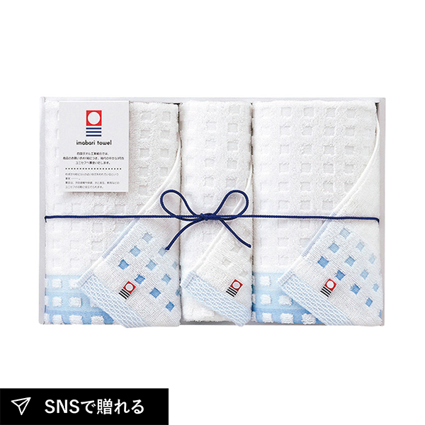 今治の穏やかで蒼く広々とした海をイメージして爽やかな色使いで仕上げた、やわらかさが際立つ真っ白な今治タオルです。抜群の吸水性を誇るタオルとして人気の今治フェイスタオル2枚とウォッシュタオルのギフトです。