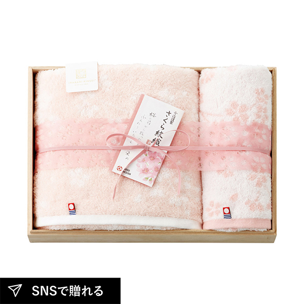 今治謹製 さくら紋織 木箱入り桜染めバス1P・フェイスタオル1P