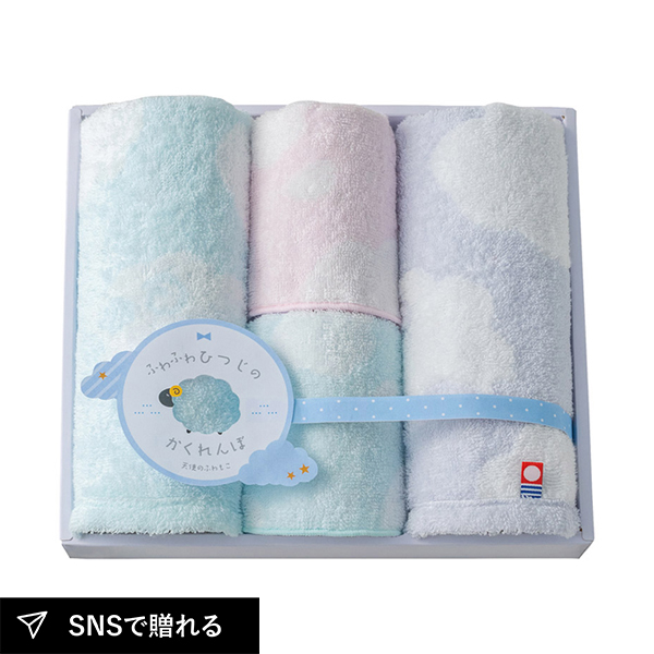 天使のふわもこ ふわふわひつじのかくれんぼ ウォッシュ2P・タオルハンカチ2P