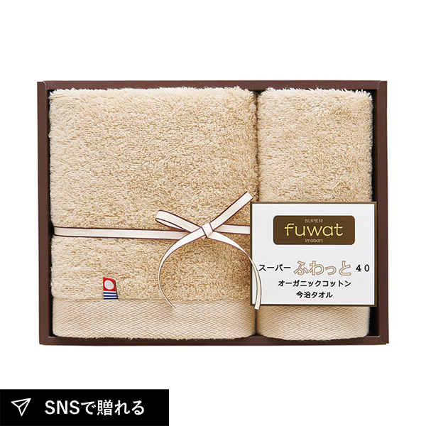 スーパーふわっと40 オーガニックコットン今治フェイス1P・ハンドタオル1P(ベージュ)