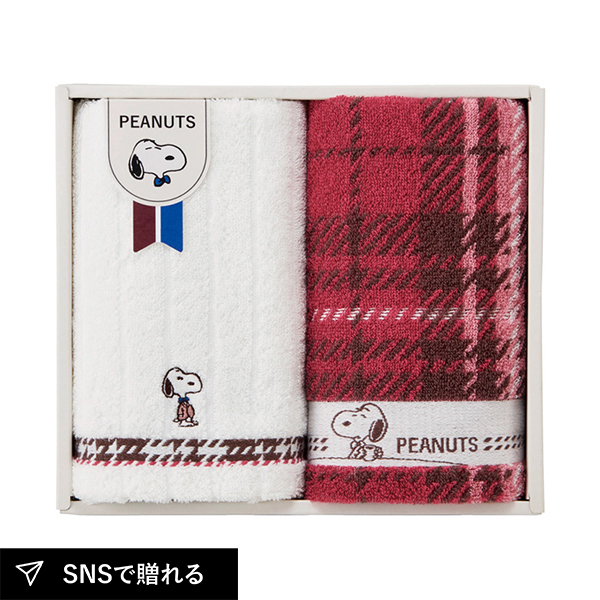 ピーナッツ スヌーピー チェック フェイスタオル2P