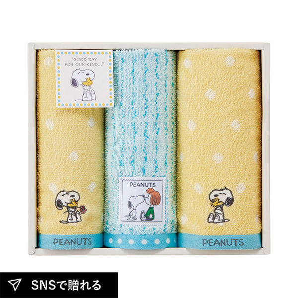子どもから大人まで、世界中の人々に愛されるスヌーピー。PEANUTSからハグをテーマに、スヌーピーが仲間に寄り添うシーンをモチーフにしたタオルギフトです。ハグするスヌーピーから優しさや思いやりが伝わるデザインが人気。