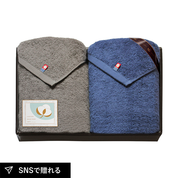 今治 コットンセレクション ミニバスタオル2P(グレージュ×ネイビー)