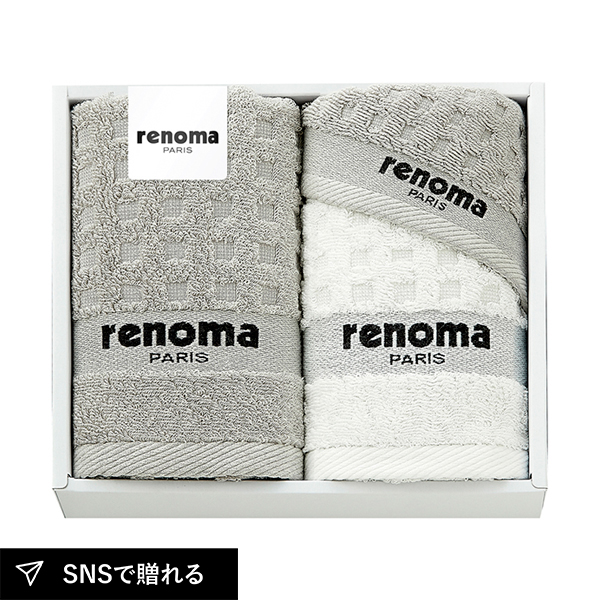 パリのモードを日常に届けるrenoma PARISのタオルセット。コットンのやさしい肌ざわりと洗練されたデザインが魅力。使うたびに心満たされ、毎日の時間を特別に彩る、大切な方へ贈りたい上質なタオルギフトです。