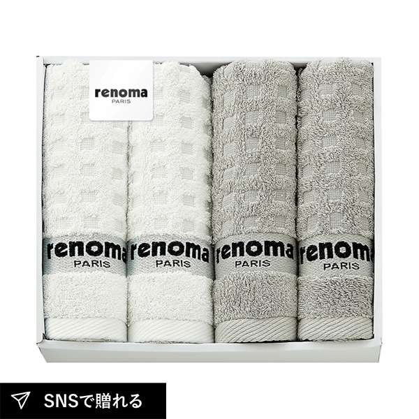 パリのモードを日常に届けるrenoma PARISのタオルセット。コットンのやさしい肌ざわりと洗練されたデザインが魅力。使うたびに心満たされ、毎日の時間を特別に彩る、大切な方へ贈りたい上質なタオルギフトです。