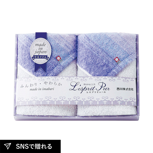 L'esprit Pur(レスプリピュール)とはフランス語で「きよらかなこころ」を意味します。純真な想いからくる、清らかなこころのイメージを清楚なパープルグラデーションを使ってふんわりとやわらかなタオルギフトにしました。