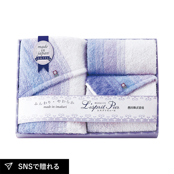 L'esprit Pur(レスプリピュール)とはフランス語で「きよらかなこころ」を意味します。純真な想いからくる、清らかなこころのイメージを清楚なパープルグラデーションを使ってふんわりとやわらかなタオルギフトにしました。