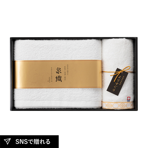 日本を代表するタオル産地の魅力を楽しめるタオルセット。やわらかく吸水性に優れた甘撚り糸の泉州タオルと、心地よい純白の今治タオルを組み合わせました。使い比べも楽しめる、贈り物に最適な上質ギフトです。