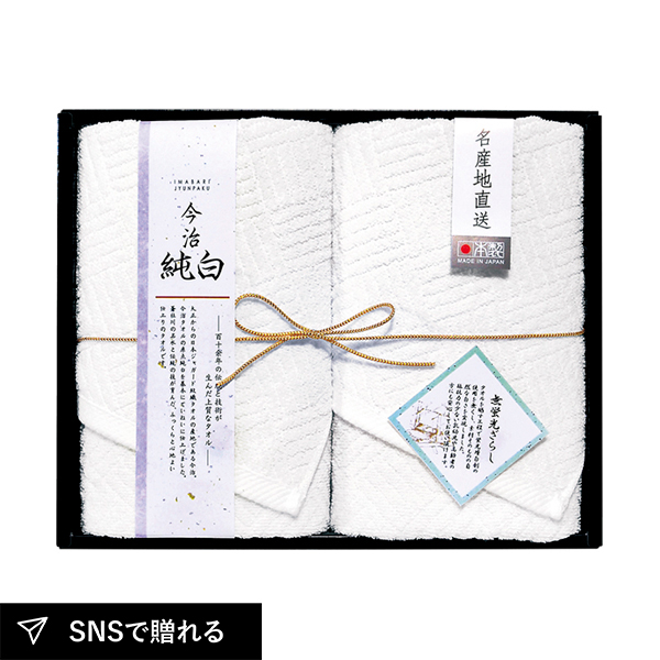 大正からの日本ジャガード紋織の産地である今治。今治タオルの原点純白を基本に丁寧に晒したタオルは吸水性も良く丈夫です。蒼社川の名水と伝統の技が育んだ、ふっくらと心地よいタオルセット。