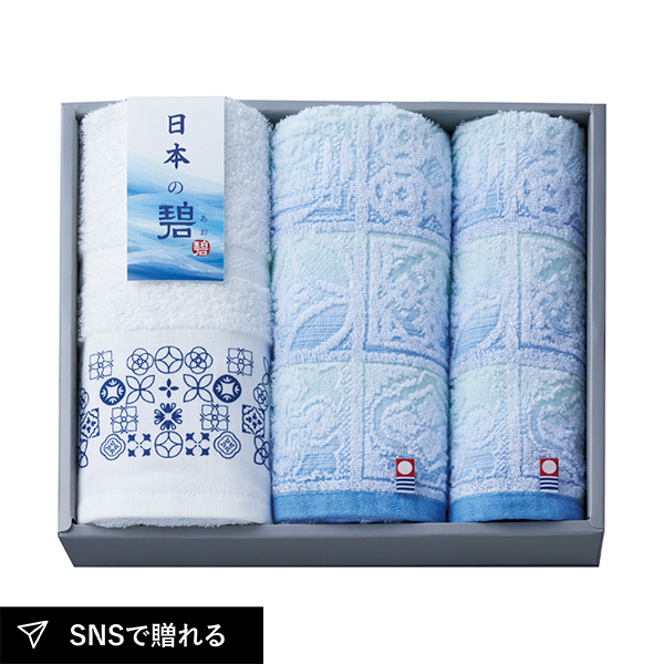 日本の碧(あお) スリムバスタオル1P・フェイスタオル1P・ハンドタオル1P