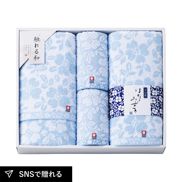 今治タオルブランド認定の「はなみずき」タオルセット。愛らしい花柄に返礼の花言葉を込めた、感謝の気持ちを伝える贈り物にぴったりなギフトです。上質な肌触りで日常使いにも最適です。