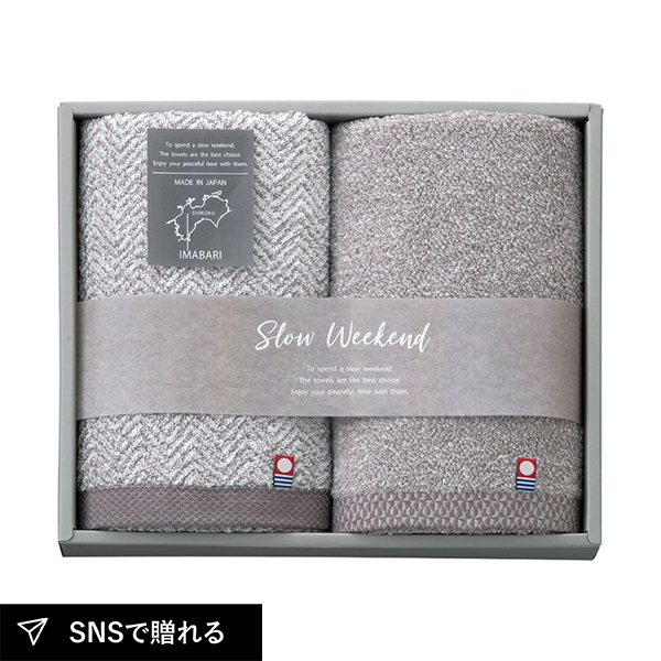 ゆったりと過ごす週末のように、シンプルだけど上質でリラックスできる素材感を楽しんでもらいたい。グレーを基調としたシンプルなデザインがおしゃれ。幅広いライフスタイルの方に喜んでいただけるタオルセットです。