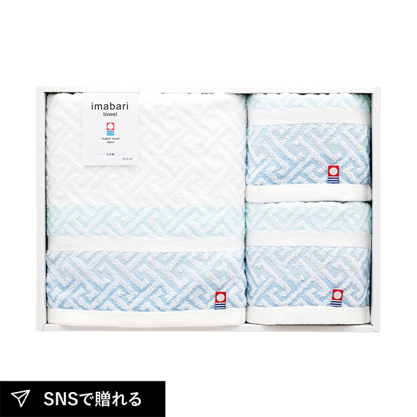 清潔感のある色合いで使い勝手の良いタオル。日本有数のタオル生産地今治の伝統的手法からうみだされた心地の良いタオルです。古くから伝わる小紋柄で織り上げました。どなたにも喜ばれるタオルセットです。