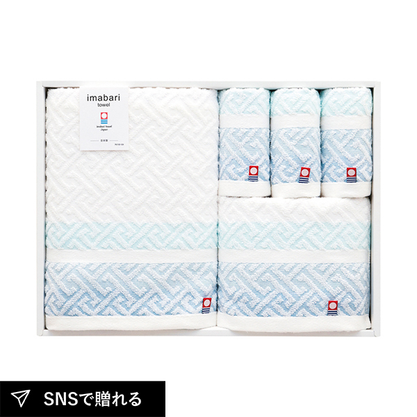 清潔感のある色合いで使い勝手の良いタオル。日本有数のタオル生産地今治の伝統的手法からうみだされた心地の良いタオルです。古くから伝わる小紋柄で織り上げました。どなたにも喜ばれるタオルセットです。