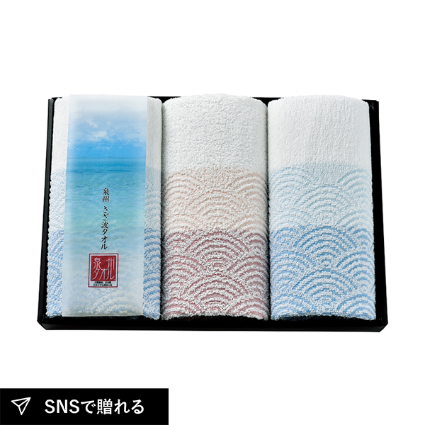 大阪・泉州の後晒製法により清潔感のある吸水性の良いタオルに仕上がりました。広大な海原をイメージしたやわらかいタオルです。タオルを織る工程の一番最後に漂白、水洗いをする製法のため、余計なものが一切ない清潔で安全なタオルになります。