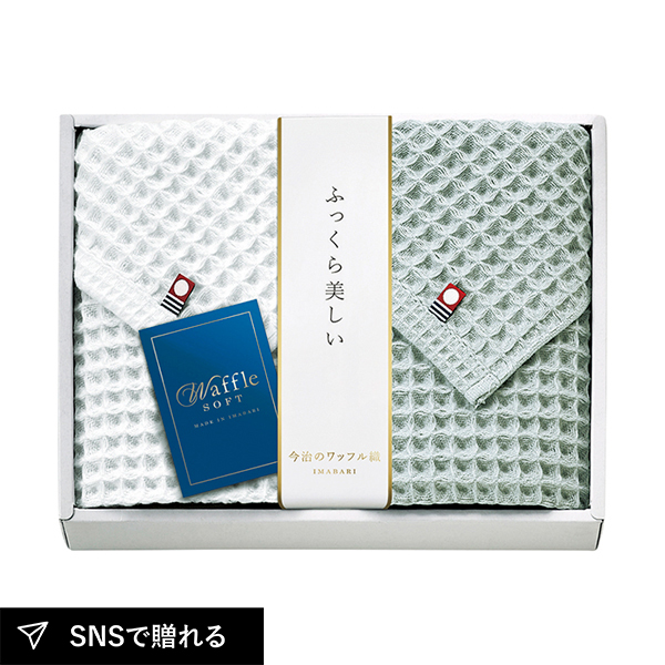 美しさと使い心地の良さを兼ね備えた、立体的な織柄の今治製タオルセット。「ワッフル織」と呼ばれるマス型のこの組織は、さらりとした肌触りと優れた吸水性が特長です。使っていくうちにボリュームが増して、ふんわりしていた感触が「ふっくら」に変わります。