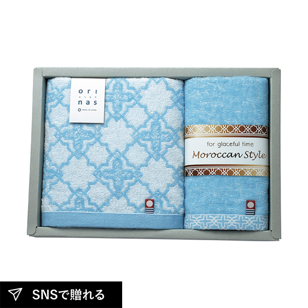 モロッカンスタイルのタイルをモチーフにした爽やかでラグジュアリーな雰囲気のあるデザイン。機能性と優しい肌触感が特徴の今治タオルです。男女問わず幅広い世代の方への贈り物におすすめです。