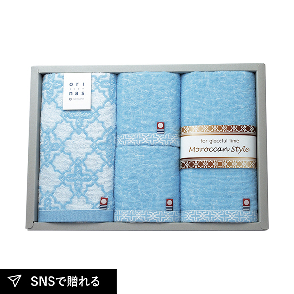 モロッカンスタイルのタイルをモチーフにした爽やかでラグジュアリーな雰囲気のあるデザイン。機能性と優しい肌触感が特徴の今治タオルです。男女問わず幅広い世代の方への贈り物におすすめです。