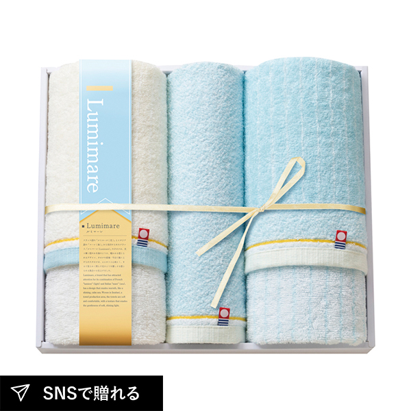 「ルミマーレ」タオルセットは、光と海をイメージした柔らかな風合いが魅力。ふんわり心地よく、まるで光に包まれるような優しさを感じられるタオルで、日常をやさしく彩る上質な贈り物に最適です。
