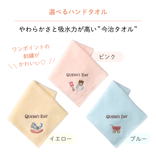 選べるハンドタオルは3色からお好きなカラーを1つお選びいただけます。