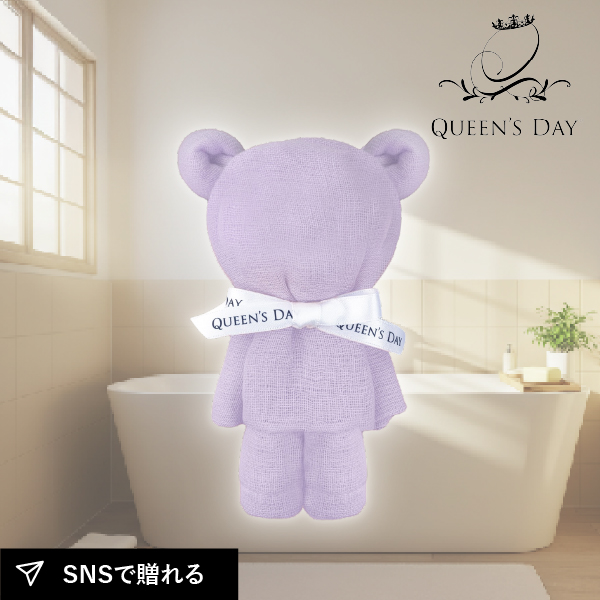 【QUEEN'S DAY】シャワータオル1枚ベア仕様(ラベンダーベア)