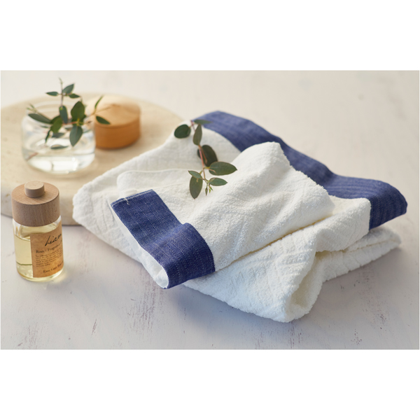 でこぼこ感のあるテキスタイルパターンで仕上げた爽やかなタオルは、コットンのシャリ感が心地よい上に乾きやすいので、毎日気持ちよくお使いいただけます。