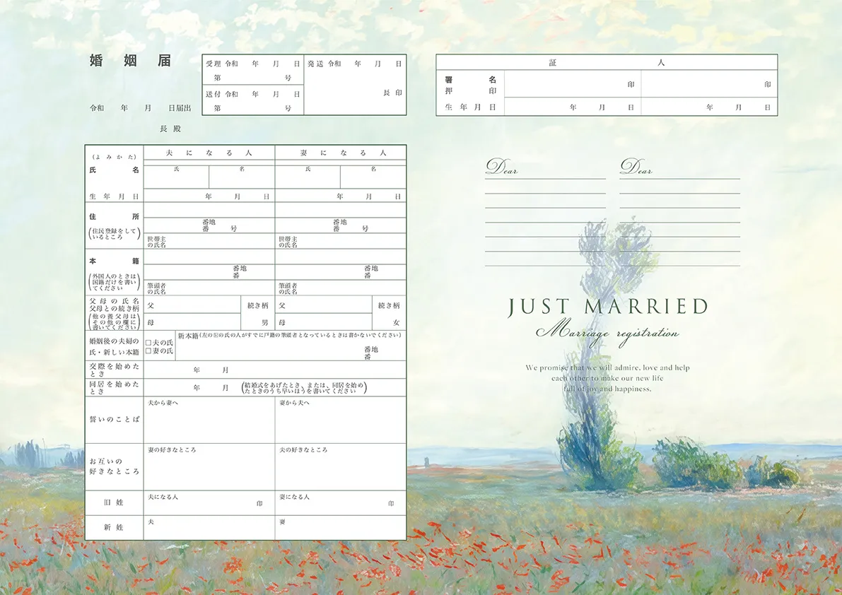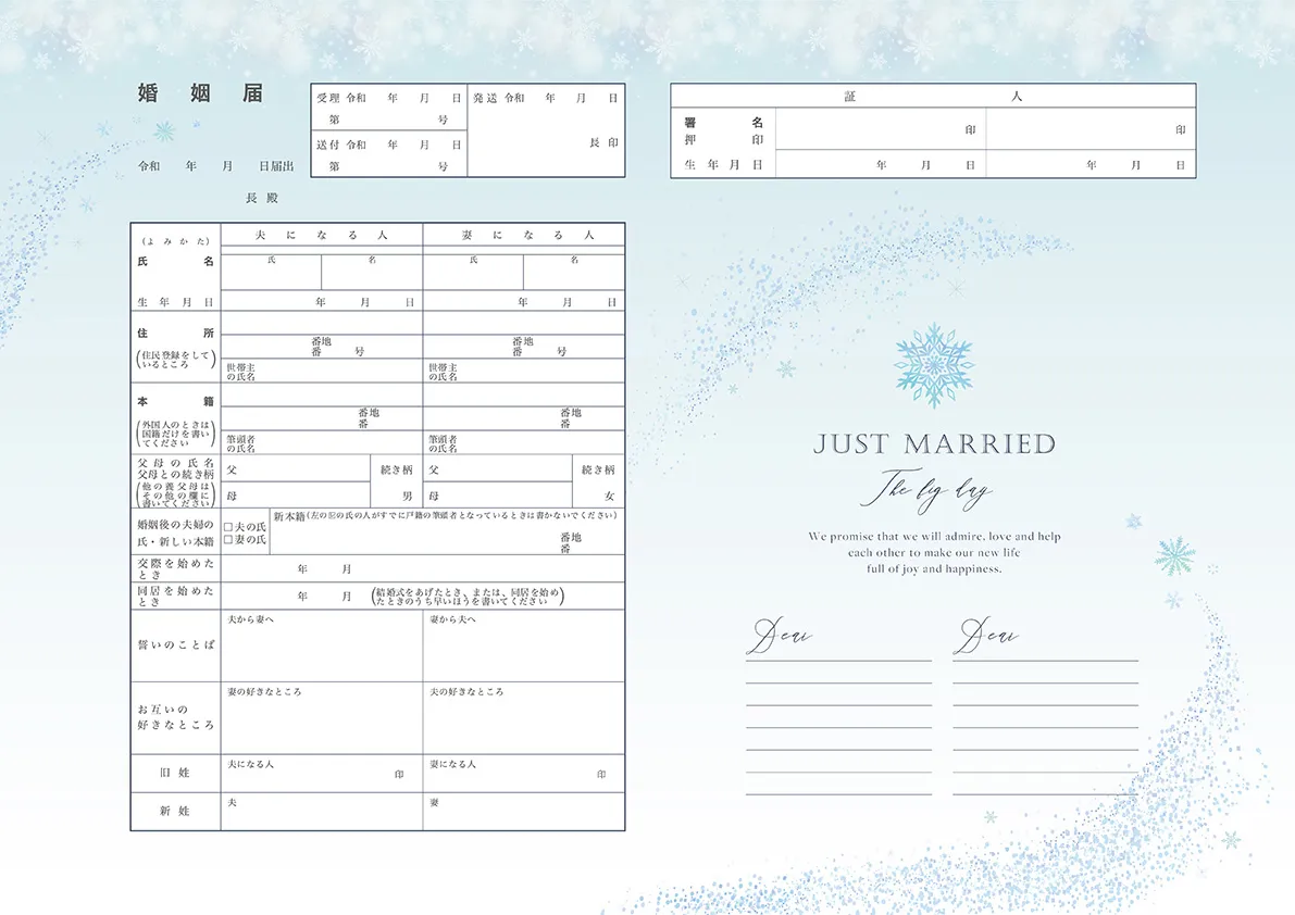 特別な記念となる婚姻届をご用意いたしました。