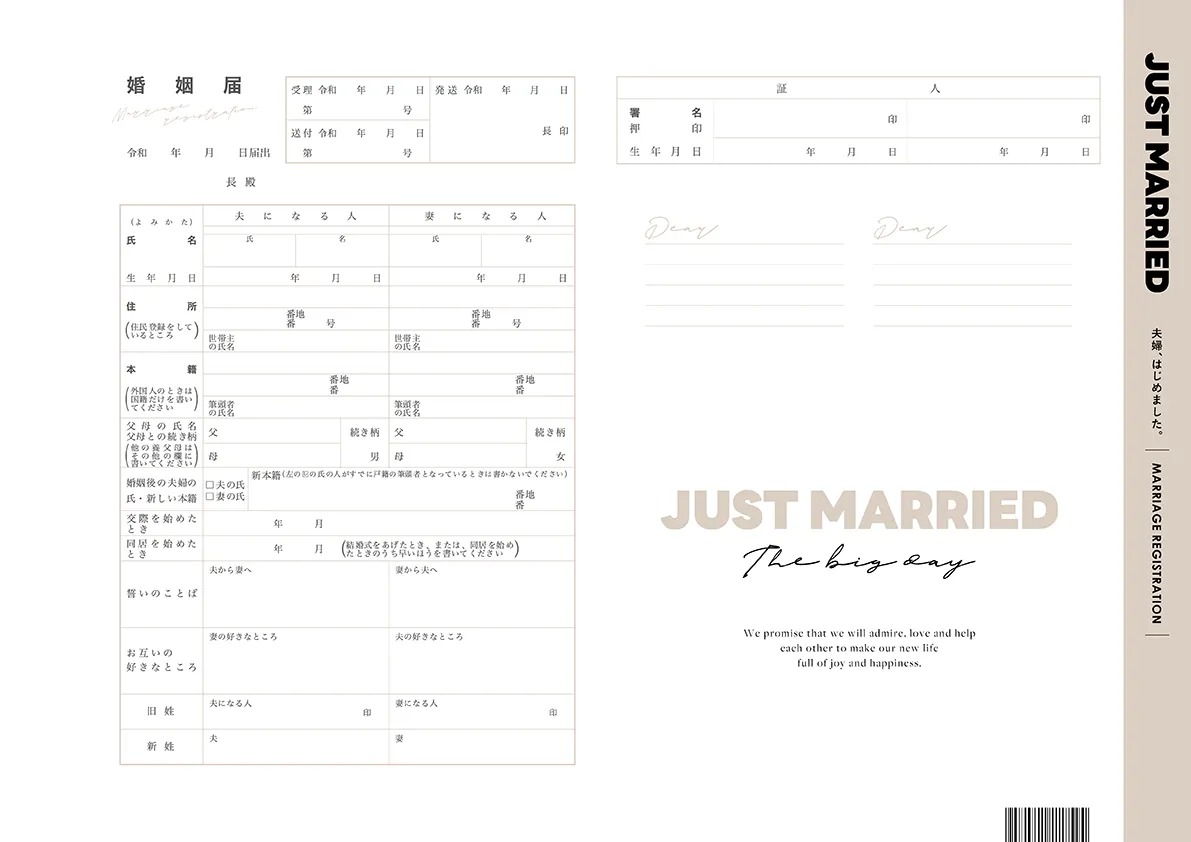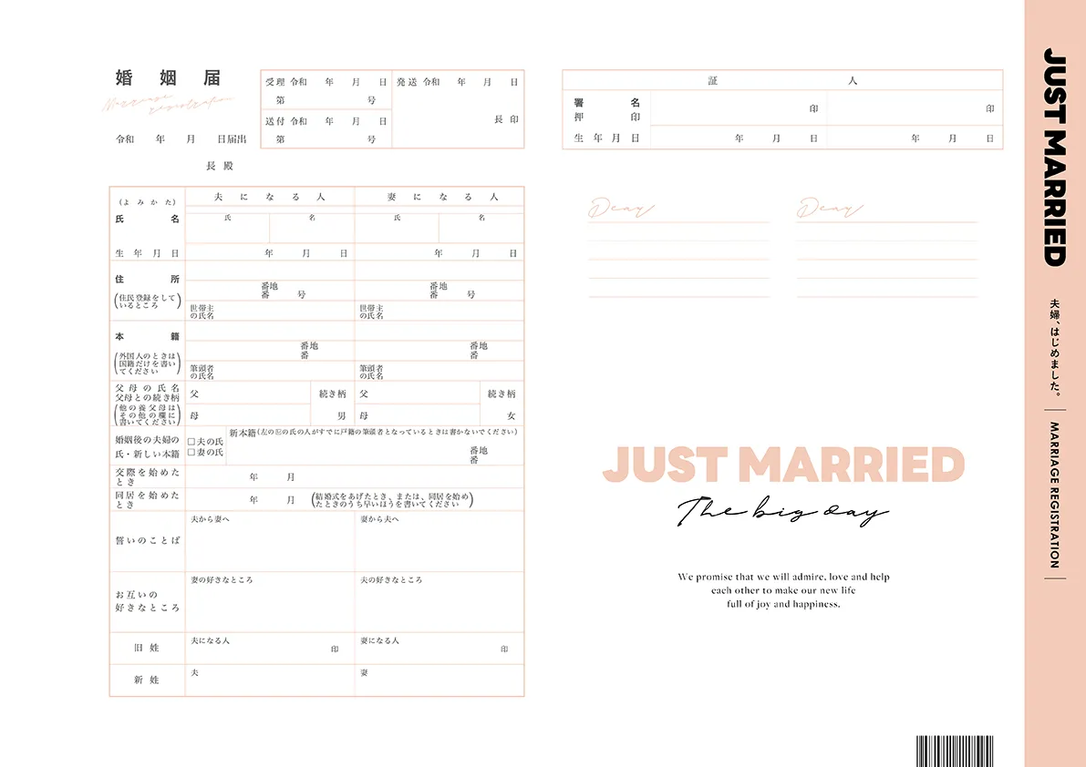 などを記入しておふたりらしい婚姻届に!