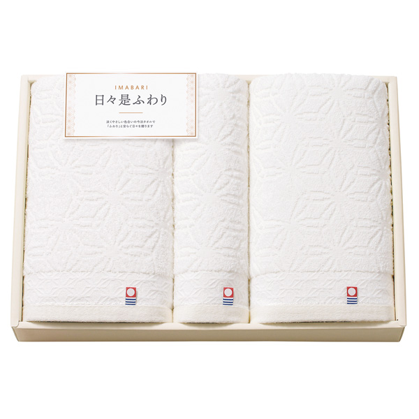清潔感を感じるやさしいアイボリーの色合いの麻の葉模様のタオルギフトです。