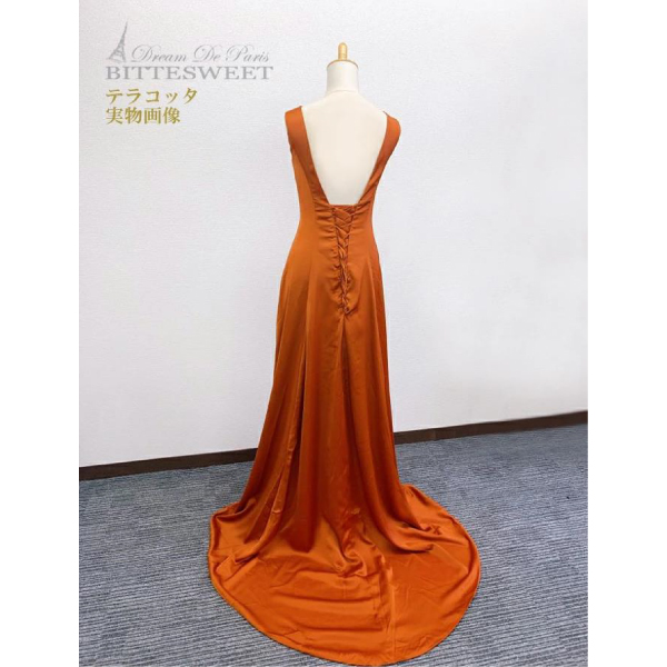 【送料無料】ノースリーブ Vネック Aラインドレス (テラコッタ)【wd181jx】|ウェディングドレス・タキシードならPIARY(ピアリー)