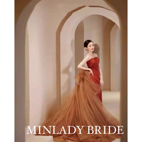 大人っぽさと可愛さを兼ね備えたブラウンマーメイドドレスは、おしゃれ花嫁に大人気。