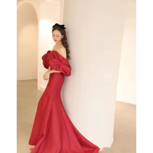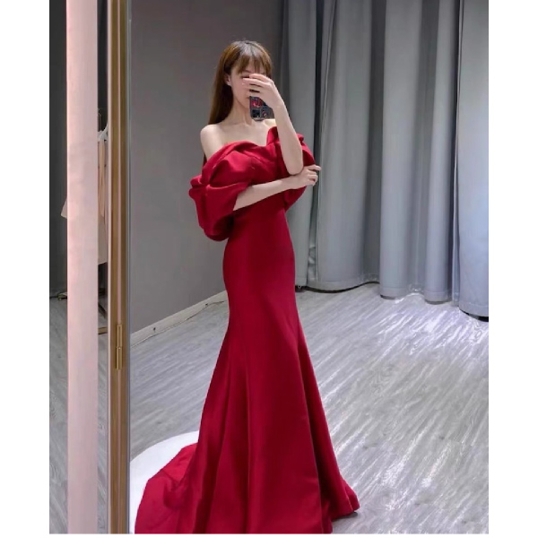【送料無料】モードカラー:赤サテンマーメイドドレス |ウェディングドレス・タキシードならPIARY(ピアリー)