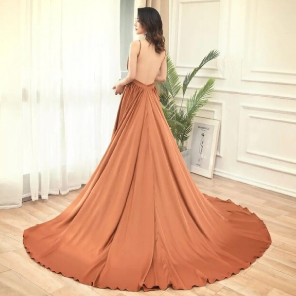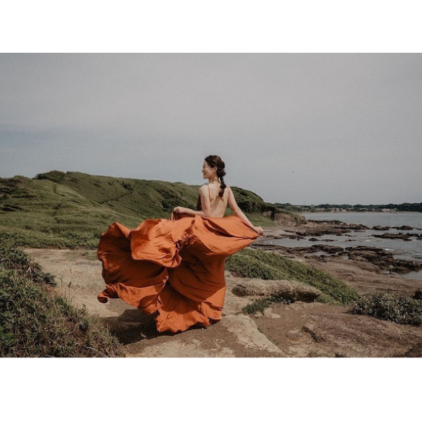 前撮りはカラードレスにしようと思い購入しました。胸元のフリルとテラコッタのカラーがとてもかわいくてお気に入りです。ウェストのあたりにフリフリがついているので、細見え効果でいい写真が取れました!