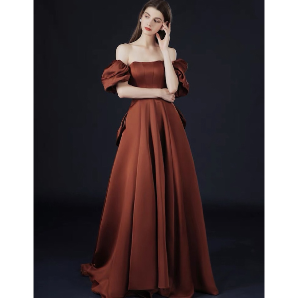 【送料無料】モードカラー:3wayサテンドレステラコッタ |ウェディングドレス・タキシードならPIARY(ピアリー)