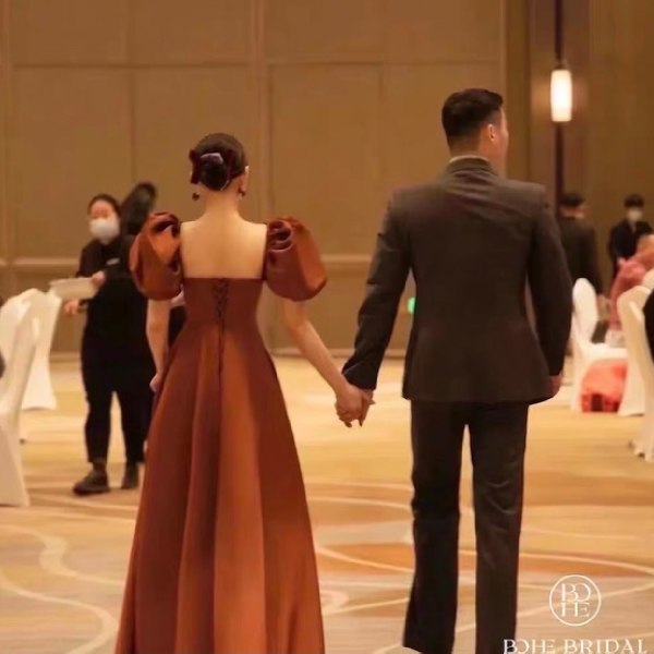 ブラウンに惹かれました。会場の装飾も前撮りもドライフラワーを用いた大人ナチュラルな雰囲気にしたいと思っていたので、それに合うドレスを探していたら、たまたま見つけ購入しました。当日と前撮りで袖を変えて着たいなって思っています。