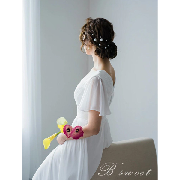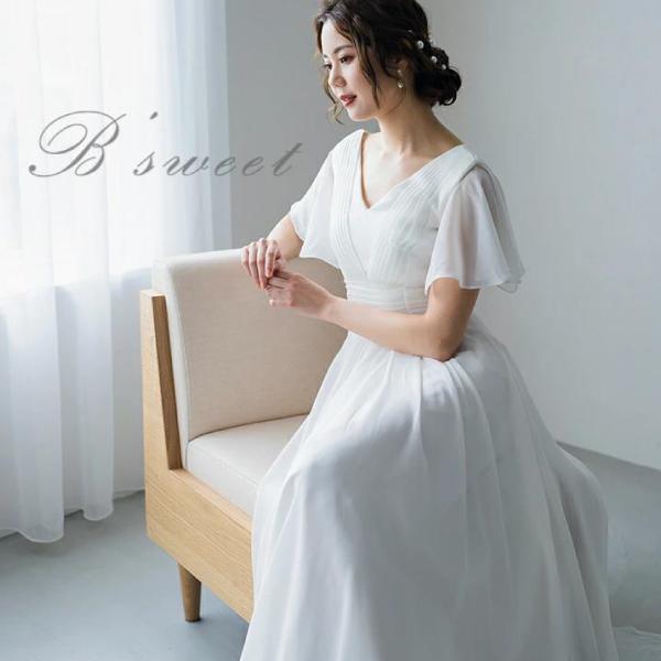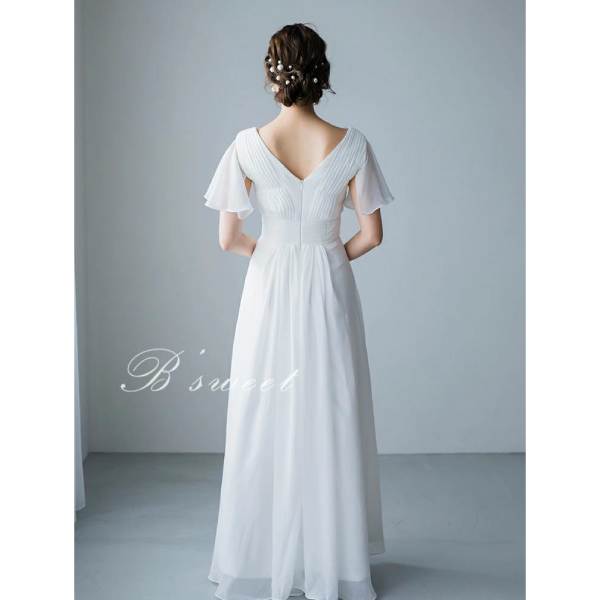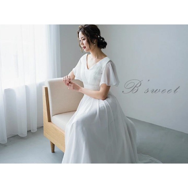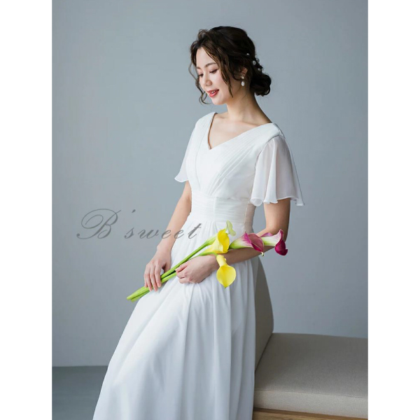 清潔感あふれるホワイトドレスに、フレア袖のデザインが華やかさを添え、清涼感に満ちた魅力を引き出します。ウエストまで続く縦のラインが、シルエットを引き締めながらも、上品で優雅な雰囲気を織り成します。このホワイトドレスは、その繊細なバランスが美しい装いを作り上げ、さまざまな場面で優雅さを放つことでしょう。フレア袖の動きや縦のアクセントが、着る人の魅力を引き立て、清涼感ある印象を着実に表現します。シンプルながらも洗練されたデザインは、エレガントなアクセサリーやヘアスタイルとの相性も良く、ウェディングやフォーマルなイベント、特別な日にふさわしい一着です。このホワイトドレスは、清らかな印象と華やかな魅力を見事に融合させ、着る人の美しさを引き立てます。