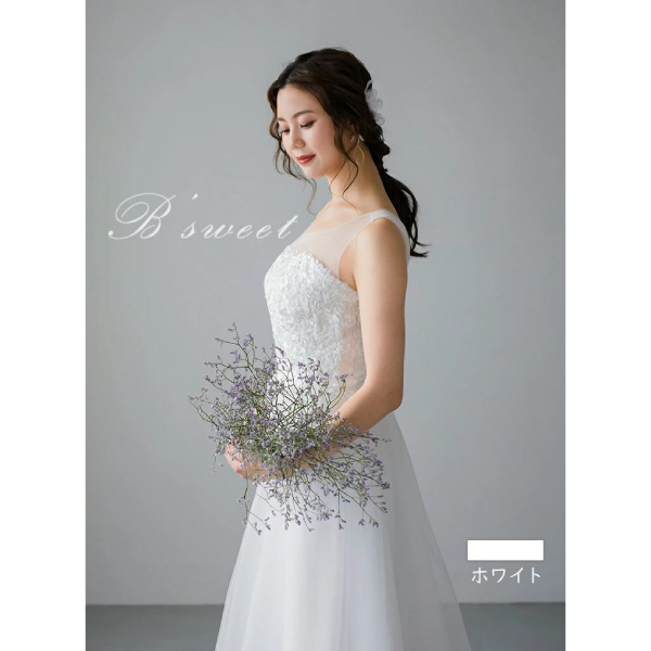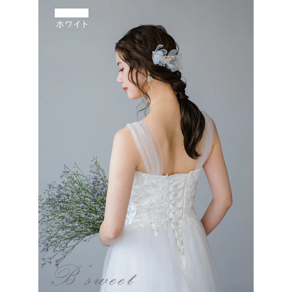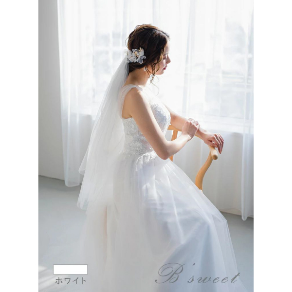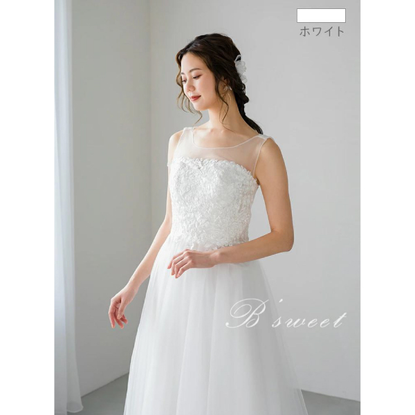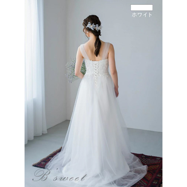 ウエスト下までの編み上げタイプのドレスは、バストやウエストの調節が可能です。シースルーのラウンドネックがビスチェのような印象を与え、動いても安定感があります。ホワイトのチュール(3層)がドレスの生地に柔らかく重なり、愛らしい雰囲気を醸し出しています。このドレスは明るい色調であり、清潔感と軽快さを漂わせ、ホワイトカラーの魅力を最大限に引き出しています。ウエスト下までの編み上げデザインは、着る人の体型に合わせて調節可能で、自分にピッタリのフィット感を実現します。シースルーのラウンドネックは、ビスチェのようなエレガントさを持ちながらも、動きやすさと快適な着心地を提供。ホワイトのチュールがドレス全体に柔らかな層を添え、可憐で魅力的な印象を際立たせます。