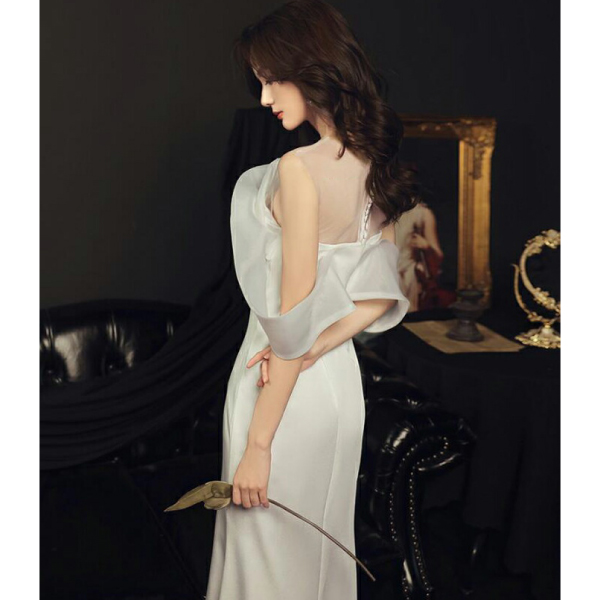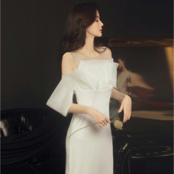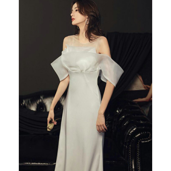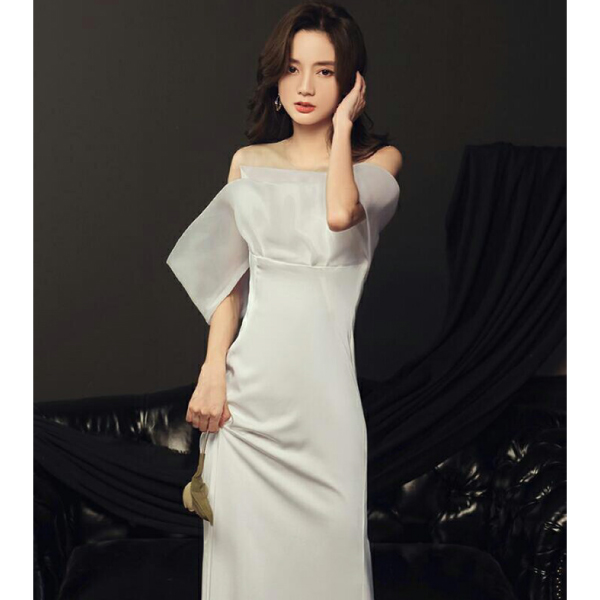 ゆったりとしたデザインのドレスは、身体にフィットしすぎず、リラックスして着ることができます。肩を露出させるデザインので、肩出しのドレスは女性らしさやエレガントさを引き立てます。マーメイドライン:ドレスのシルエットの一つで、上半身から膝までの部分はタイトにフィットし、膝から下は広がるようになっています。ドレスの開閉を行うためのファスナーが装備されています。床付きタイプ:長めの丈で、床に触れるくらいのドレスの長さを指します。