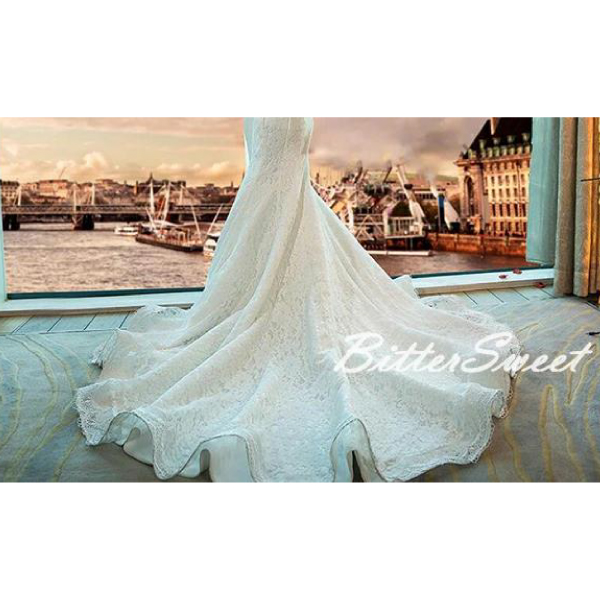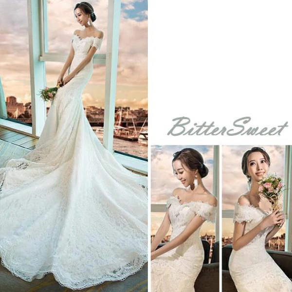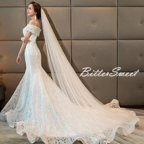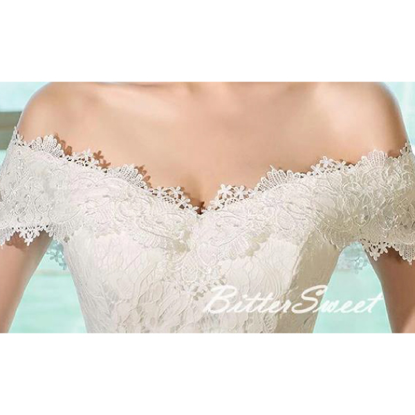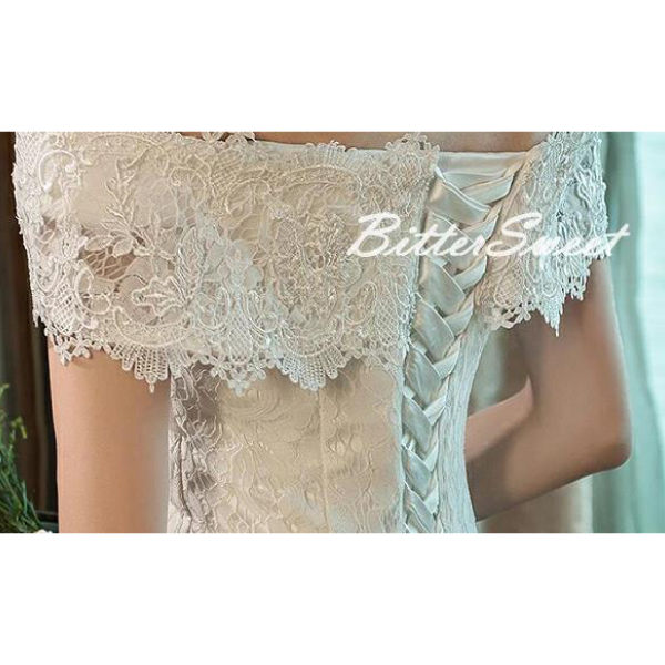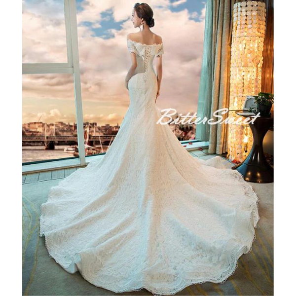 【送料無料】マーメイドタイプオフショルダートレーンドレス 編み上げ 袖あり【wd109fr】|ウェディングドレス・タキシードならPIARY(ピアリー)