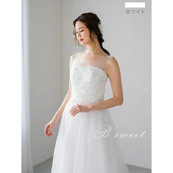 【送料無料】リボン付きノースリーブスレンダーライン ロングトレーン(ホワイト)2タイプ【床付きタイプ/トレーン】【wd114xy】|ウェディングドレス・タキシードならPIARY(ピアリー)