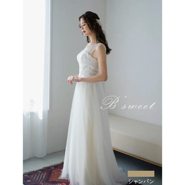 【送料無料】リボン付きノースリーブスレンダーライン ロングトレーン (シャンパン)2タイプ【床付きタイプ/トレーン】【wd114xy】|ウェディングドレス・タキシードならPIARY(ピアリー)