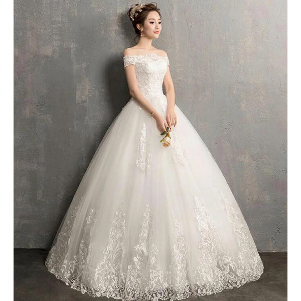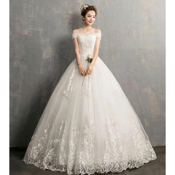 【送料無料】Aライン ロングドレス フレア袖あり 床付き ロング 編み上げ【wd396af】|ウェディングドレス・タキシードならPIARY(ピアリー)