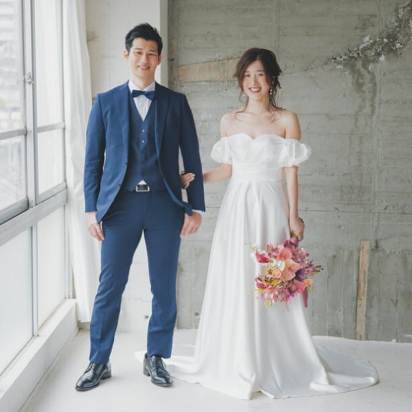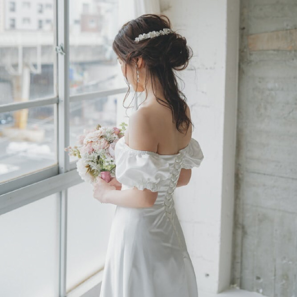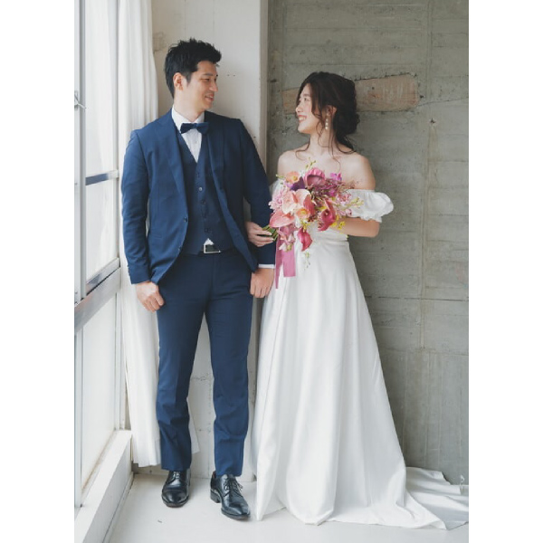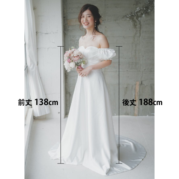 二の腕が気になるので、腕を程よく隠せるデザインの物を探していました。 式場のものも試着して、オフショルなら自分の体型にも合うかもと思い、ネットでも探していたところインスタからこちらのドレスにたどり着きました♪ シンプルなドレスで、大人の私でも無理なく着こなせそう! 前撮りも考えると、購入して持ち込んだ方が安くなりそうなので購入することにしました。 これから撮影するのが楽しみです!