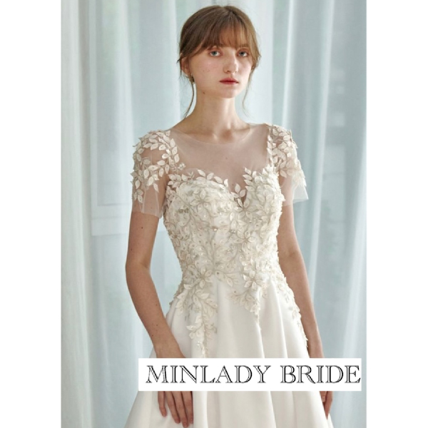 リーフ&小花のレースを使用したナチュラルでフェミニンなAラインドレス。