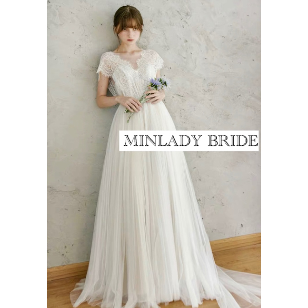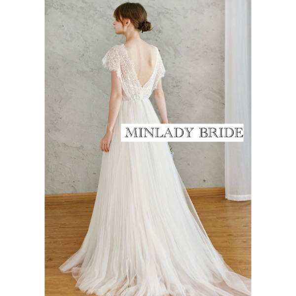 とても軽やかなチュールと繊細なレースのナチュラルなドレスです。