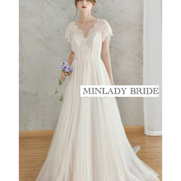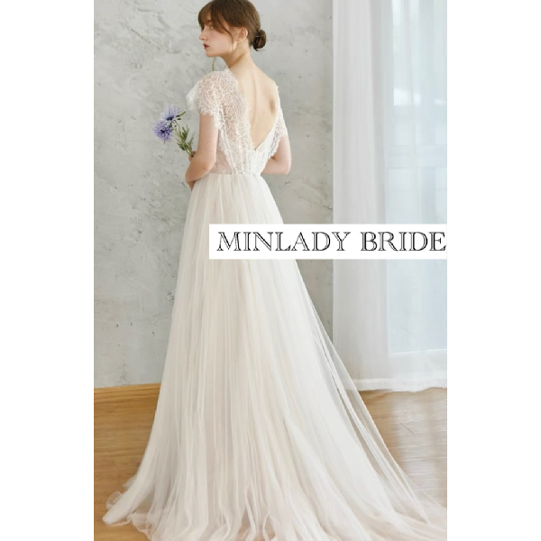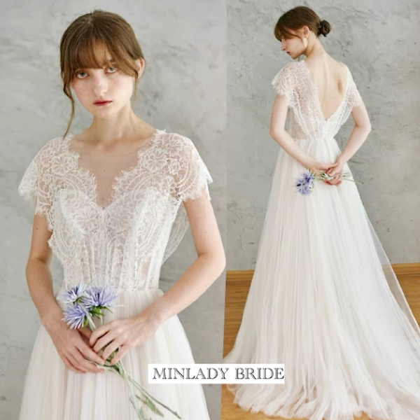 ナチュラルな雰囲気のドレスを探していたので、イメージにぴったりでした! 細かいチュールがきれいでとても気に入りました。背中をきれいに見せつつ、袖付きで気になる部分は隠せるのも良いです♪