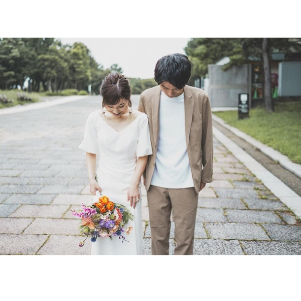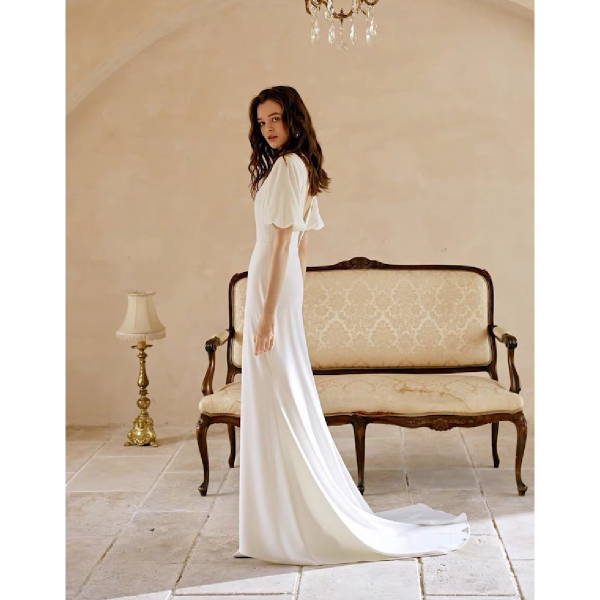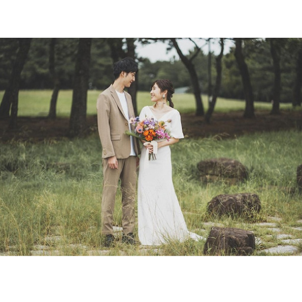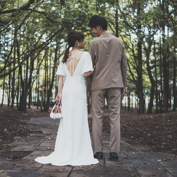 動くたびに軽やかで伸び伸びとした自由な雰囲気が漂います。自然体で形式ばったデザインではないため前撮りやフォト婚に最適です。