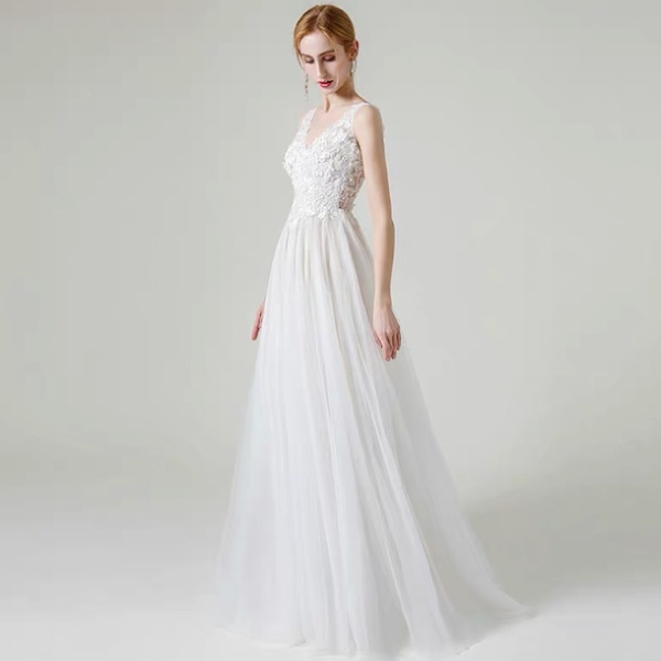 【送料無料】Vネック華やか刺繍チュールドレス |ウェディングドレス・タキシードならPIARY(ピアリー)