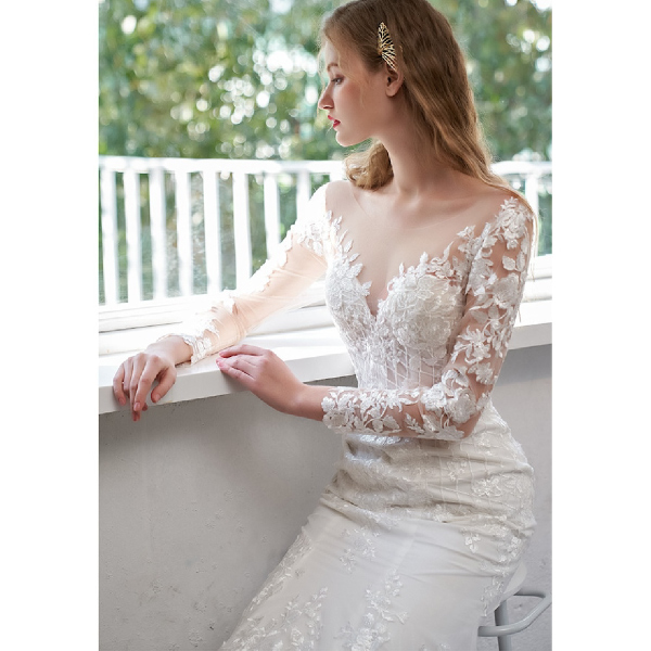 【送料無料】袖付き大柄刺繍マーメイドドレス |ウェディングドレス・タキシードならPIARY(ピアリー)