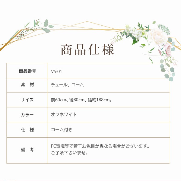 シンプルさが魅力な定番のショート丈タイプ。お気に入りのブライダルアクセサリーが目立つよう、バランスのとれた引き算コーディネートをされたい花嫁さまにおすすめ。ショート丈で洗練された印象に。ウェディングドレスのバックスタイルが引き立つ後ろ80cm丈のベールのため、 ウエスト位置のドレスデザインが隠れる心配なし。重たい印象にならない切りっぱなしだからこそ、リボンやコサージュ、 ドレープなどがあしらわれたバックスタイルで魅了するウェディングドレスにもマッチレースで魅せるロングトレーンも引き立ちます。ナチュラル〜ロイヤルまで幅広いコーディネートに対応。広がりすぎない軽やかなシルエットの切りっぱなしベールは、 厳かなホテルウェディングーナチュラルなリゾートウェディングまで合わせやすさ◎ウェディングドレスのシルエットやディテールに左右されないデザイン。永遠の花嫁定番ウェディングベール 装飾のないショートタイプ。花嫁様・ウェディングドレスアクセサリーを最大限に引き立たせます。有名高級ドレスサロンのベールを手がける国内アトリエと共同でお作りしたアイテムで、 1点1点丁寧に心をこめて縫製しています。シンプルなショート丈のベールは裾レースが圧巻のロングトレーンが美しく映えるため、バックスタイルまでこだわりたい花嫁様におすすめです。どの色味のウェディングドレスにも馴染むオフホワイト単色差し込みやすいとヘアメイクさんや現場のプロの方ーから好評の金属製コームがテグスでしっかり縫われています。チュールの目は粗すぎず細かすぎずで程よい透け感。ベールダウンの際もベール越しにアクセサリーの煌めきがしっかり伝わります。